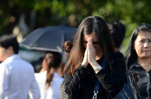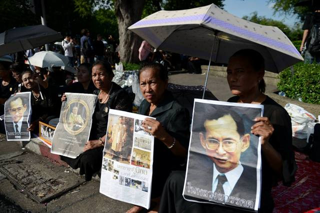Ngay trong chiều 15-10, hàng chục nghìn người đã đổ về Hoàng cung để mong được vào vĩnh biệt nhà vua kính yêu của họ. Khu vực chung quanh Hoàng cung tràn ngập người dân đến từ khắp các tỉnh, thành phố của Thái-lan. Dưới nắng chiều gay gắt, họ kiên nhẫn xếp thành những hàng dài suốt từ cửa Cung điện Hoàng gia tới đầu cầu Pink Klao, cách đó cả cây số. Tất cả mọi người đều mặc những bộ trang phục mầu đen, rất nhiều người ôm theo hình ảnh của nhà vua.