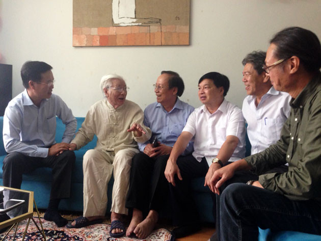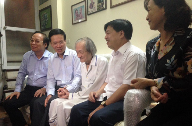 Đến nhà NSND Trần Tiến trong căn gác nhỏ trên đường Phan Đình Phùng (ảnh dưới), đồng chí Võ Văn Thưởng đã hỏi thăm sức khỏe cũng như cuộc sống nghệ sĩ, chuyện trò về những câu chuyện chung quanh nghiệp diễn của NSND Trần Tiến.