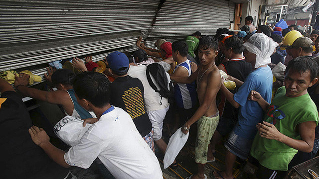 Nạn cướp bóc đã bắt đầu xuất hiện tại một vài siêu thị ở Tacloban. Những kẻ cướp bóc lấy bất kỳ thứ gì mà họ kiếm được trong lúc những nỗ lực cứu trợ đang gặp nhiều khó khăn do các con đường và các tuyến liên lạc bị hư hại nghiêm trọng. Ông Richard Gordon, Chủ tịch Hội Chữ thập đỏ Philippines cho biết, đám đông tấn công những xe tải chở thực phẩm, lều bạt và nước uống trên cây cầu Tanauan dẫn vào Leyte.