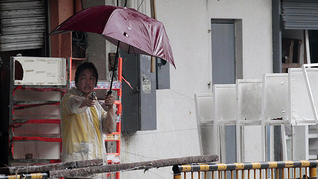 Một chủ cửa hàng dùng súng tìm cách để ngăn chặn đám đông cướp bóc cửa hàng của ông ta (ảnh: AFP).