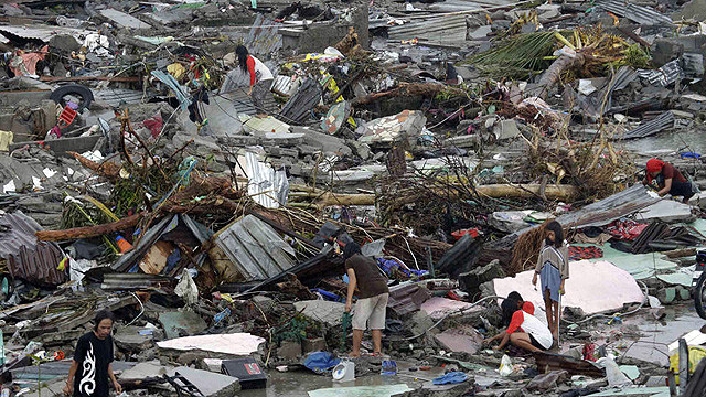 Khi cơn bão đổ bộ vào khu vực bờ biển Philippines, đã làm nước biển dâng cao kết hợp với những mảnh vỡ của đồ đạc, nhà cửa mà nhiều người nói rằng đã tạo thành một cơn sóng thần, khiến hàng trăm người bị chết đuối.