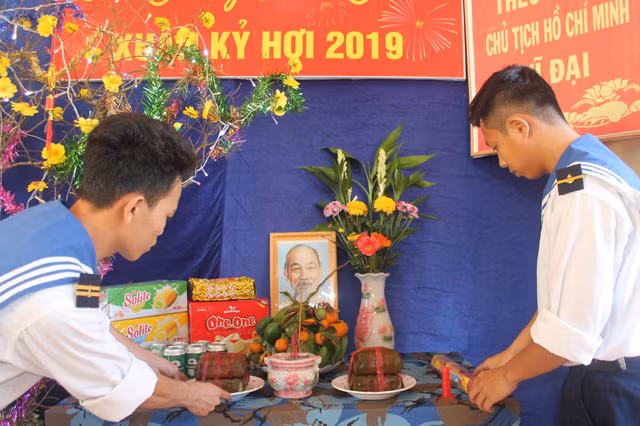 Chiến sĩ hải quân trên đảo Hòn Đốc trang trí doanh trại và bàn thờ Bác Hồ chuẩn bị đón Tết.