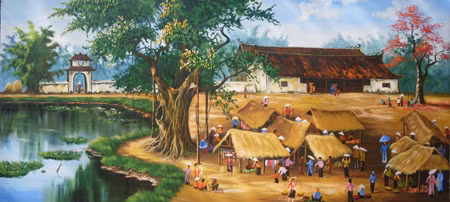 Phiên chợ quê - Sơn dầu của LÊ VĂN MINH.