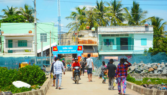Năm 2007, lần đầu tiên tôi đặt chân đến Sơn Hải. Hồi ấy, tàu từ đất liền ra đảo Hòn Heo mỗi ngày chỉ một chuyến ra một chuyến vào, còn tàu du lịch đến đảo chỉ thỉnh thoảng. Trên hòn đảo trung tâm của xã đảo chẳng có gì đặc biệt, ngoài việc di chuyển chỉ cuốc bộ luồn lách qua những con đường nhỏ hẹp. Trên đảo vẫn có chợ nhưng hàng hóa không nhiều và đa dạng như bây giờ. Cánh đàn ông tờ mờ sáng đã dong thuyền ra khơi, đến xế mới quay về đảo. Sau khi bán đi mớ sản vật, đưa tiền cho vợ, thì gầy sòng nhậu lai rai. Phụ nữ và người lớn tuổi ở nhà nội trợ, trông con cháu, đan vá lưới, hoặc xẻ mớ cá, mực phơi khô. Bọn con nít long nhong chơi, chẳng quan tâm nhiều đến chuyện học hành. Dù vậy, nhưng khi đó Sơn Hải đã “xóa” được hộ nghèo và không còn nhà xiêu vẹo, dột nát theo chuẩn của nhà nước. Không phải Sơn Hải khá, mà đặc trưng của đất đảo mức sinh hoạt cao hơn so với đất liền, nên căng theo chuẩn hộ nghèo thì không hộ nào trong chuẩn, nếu không xảy ra tai nạn, già yếu neo đơn. Còn ở nơi đầu sóng ngọn gió nếu nhà xiêu vẹo, dột nát thì làm sao đương đầu với cảnh gió mưa thường trực.