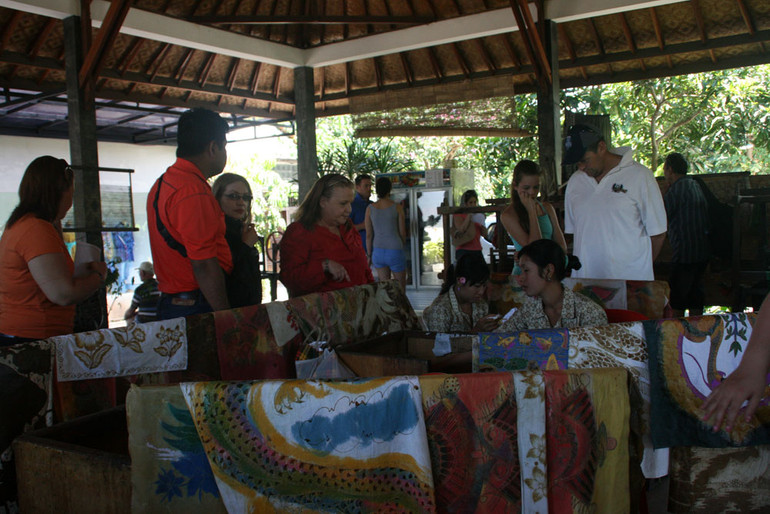 Đến thăm Bali, khách du lịch sẽ được chỉ tới làng dệt vải thủ công Batik Tohpati, cách Kuta 12 km. Tại đây, toàn bộ các công đoạn từ vẽ mẫu, can mẫu, vẽ sáp, nhuộm màu, thu sáp… đều được trình diễn bên ngoài cho du khách thưởng ngoạn. Thậm chí, có cả dịch vụ dành cho những người ham khám phá, muốn tự tay vẽ và nhuộm một tấm vải Batik. Gian hàng giới thiệu sản phẩm cung cấp đủ loại, từ móc chìa khóa, giày vải cho đến khăn, áo…, cả những tấm vài Batik để khách tùy ý may trang phục.