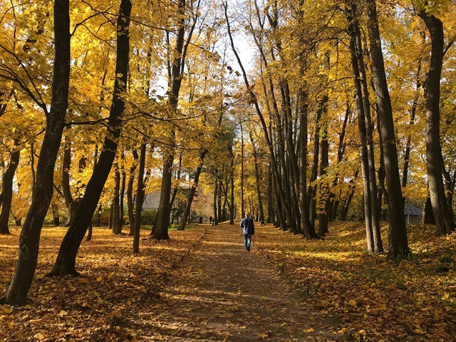 Con đường nhỏ dẫn vào điền trang của Lev Tolstoy trong tiết cuối thu rực rỡ. Lá vàng dường như không thể vàng hơn. Bầu trời dường như không thể xanh hơn. Chúng tôi không nén nổi niềm xúc động khi được đặt chân tới mảnh đất ấy, được hít thở cùng bầu không khí ấy, chiêm ngưỡng không gian ấy, và được chầm chậm bước theo con đường nhỏ lên đồi, nơi ngôi nhà bình dị của nhà văn nằm chen trong những tán bạch dương, tán lá phong đã ngả hết sắc vàng… Như cảm thấy đâu đây còn in dấu chân nhà văn lúc đương thời!