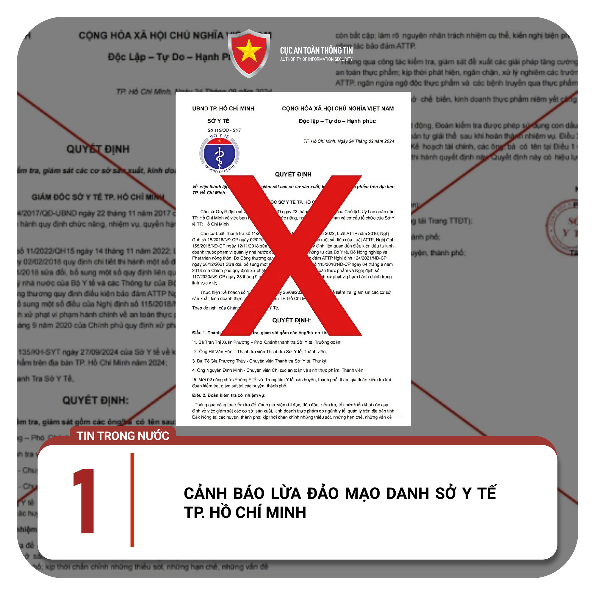 Mới đây, Sở Y tế Thành phố Hồ Chí Minh vừa phát đi cảnh báo về việc một số đối tượng giả mạo gửi thông tin Sở tổ chức đoàn kiểm tra vệ sinh an toàn thực phẩm cho các cơ sở kinh doanh dịch vụ ăn uống tại Thành phố Hồ Chí Minh với mục đích lừa đảo.