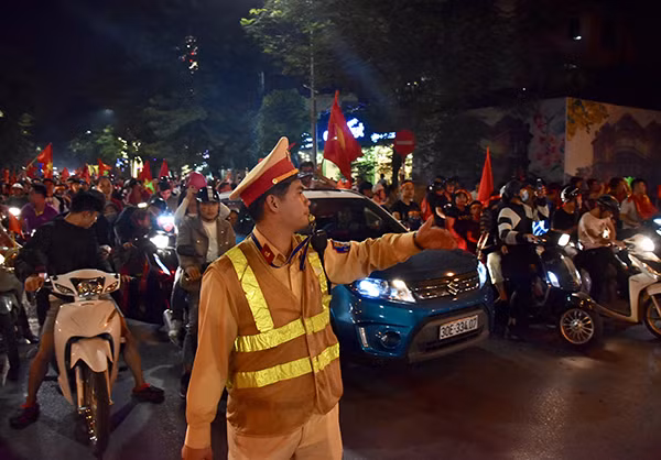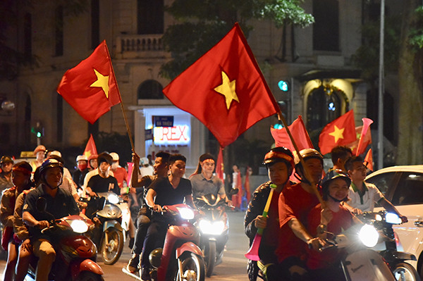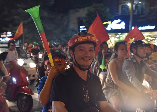 * Người hâm mộ diễu hành trên đường phố, tiếp sức cho đội tuyển Việt Nam