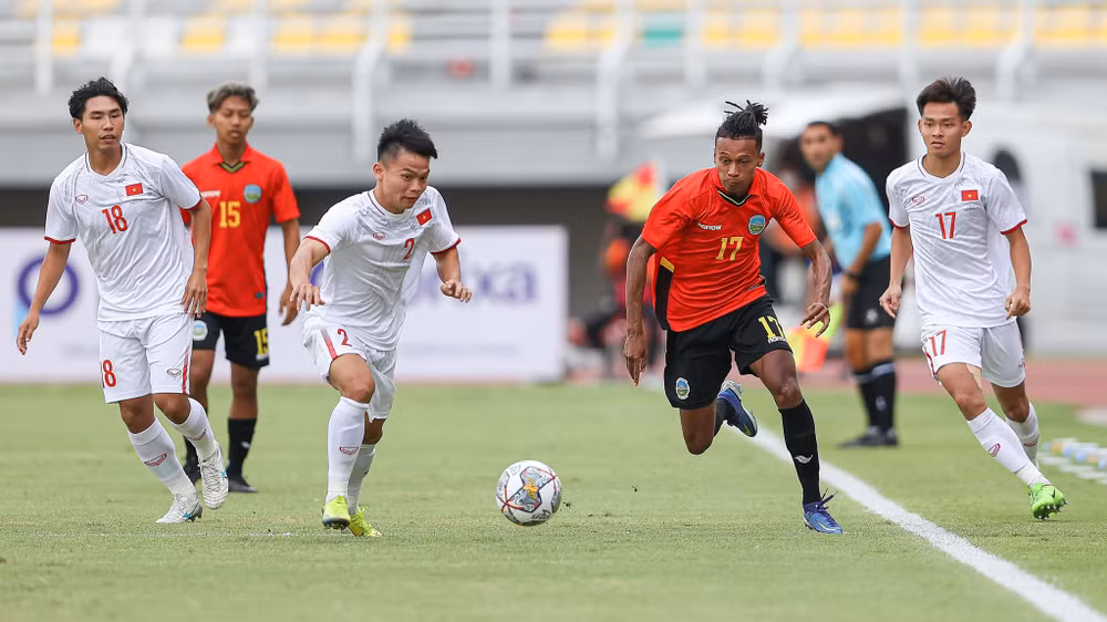 Dù xáo trộn mạnh về đội hình nhưng U20 Việt Nam vẫn khởi đầu rất ấn tượng. Đoàn quân của ông Đinh Thế Nam đã chơi pressing ngay từ đầu, tạo thế tấn công áp đảo về phần sân của U20 Timor-Leste.