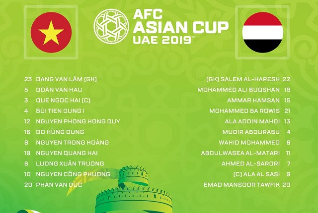 Đội tuyển Việt Nam bước vào trận cầu “sinh tử” với Yemen ở lượt đấu cuối cùng bảng D Asian Cup 2019 với nhiệm vụ giành trọn ba điểm để tìm kiếm cơ hội đi tiếp vào vòng knockout. Cả hai đội đều đang ở tình thế giống nhau: cùng để thua trong hai trận đầu tiên, chưa có điểm số nào và đang đặt quyết tâm giành chiến thắng để có cơ hội cạnh tranh tấm vé vớt vào vòng loại trực tiếp dành cho một trong bốn đội xếp hạng ba tốt nhất.