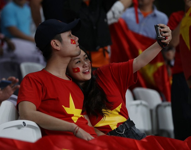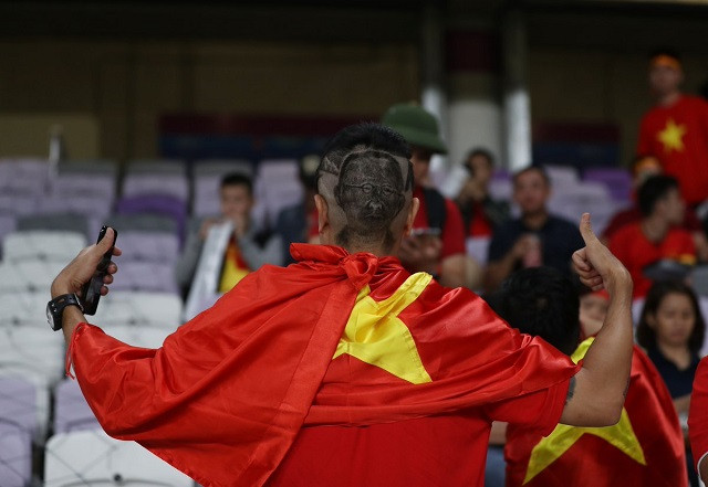 Cổ động viên Việt Nam có mặt trên khán đài sân Hazza bin Zayed tiếp lửa cho thầy trò HLV Park Hang Seo. (Ảnh: AFC)