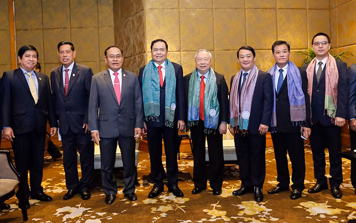 Cùng tham dự buổi tiếp, về phía Việt Nam có đồng chí Hầu A Lềnh, Ủy viên Trung ương Đảng, Phó Chủ tịch, Tổng Thư ký UBTƯ MTTQ Việt Nam; đồng chí Vũ Mão, nguyên Ủy viên Trung ương Đảng, nguyên Chủ nhiệm Văn phòng Quốc hội, nguyên Chủ nhiệm Ủy ban Đối ngoại của Quốc hội. Về phía Đoàn đại biểu cấp cao Campuchia có ông Nhem Valy, Ủy viên Trung ương Đảng Nhân dân Campuchia, Phó Chủ tịch Thường trực kiêm Tổng Thư ký Hội đồng Quốc gia Mặt trận Đoàn kết Phát triển Tổ quốc Campuchia.