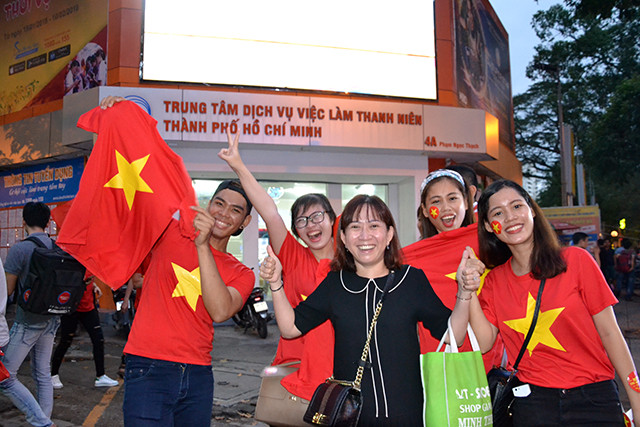 Niềm vui của các cổ động viên TP Hồ Chí Minh sau khi đội tuyển U23 Việt Nam thắng U23 Ca-ta. Ảnh: MẠNH HẢO