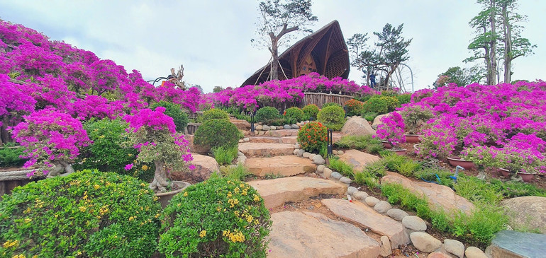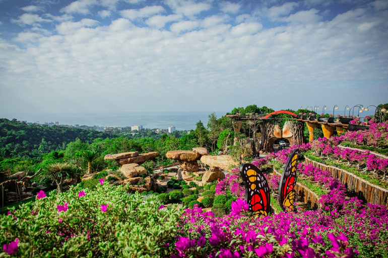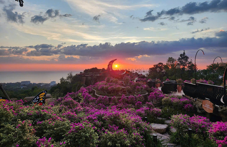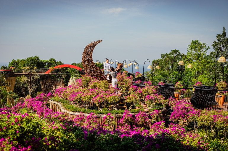 - Triền hoa rực rỡ sắc màu - Dải lụa màu giữa đồi xanh: Tiếp bước trên những bậc thềm đá tự nhiên, du khách sẽ đến với những triền hoa rực rỡ sắc màu. Những thảm hoa tím trải dài như dải lụa mềm mại, thoang thoảng hương thơm dịu nhẹ, tạo nên một khung cảnh lãng mạn và quyến rũ, níu chân du khách. Hãy tưởng tượng bạn đứng giữa biển hoa, ngắm nhìn khung cảnh thiên nhiên hùng vĩ, hít thở bầu không khí trong lành, mọi lo âu muộn phiền dường như tan biến. Đây chính là điểm dừng chân lý tưởng để du khách ghi lại những khoảnh khắc đáng nhớ trong chuyến hành trình khám phá The Peak.