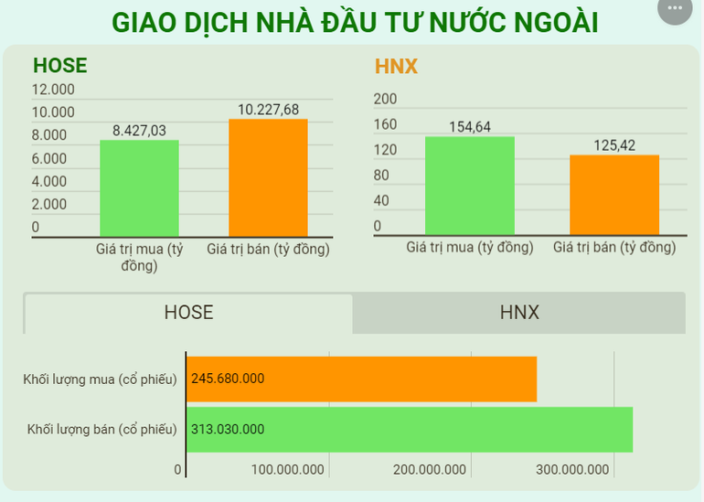 Trong tuần, thanh khoản trên cả 2 sàn đều giảm thể hiện mức độ phục hồi kém sau tuần giảm mạnh. Cụ thể, giao dịch tại HOSE đạt 99.660.66 tỷ đồng, giảm khá mạnh 20,3% so với tuần kỷ lục trước, tương ứng khối lượng giao dịch giảm 20,2%. Thanh khoản HNX giảm mạnh hơn 28,5% với 9.599,13 tỷ đồng được giao dịch. Nhà đầu tư nước ngoài gia tăng giao dịch và tiếp tục bán ròng mạnh với giá trị 1.800,65 tỷ đồng, mua ròng trên HNX với giá trị 29,22 tỷ đồng.