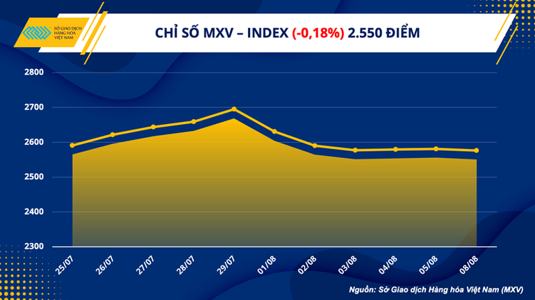 Sự lao dốc gần 6% của giá khí tự nhiên kéo chỉ số MXV-Index Năng lượng dẫn đầu đà giảm điểm. Trong khi đó, nhóm kim loại đón nhận lực mua tương đối mạnh. Tuy nhiên, với sức hút của dầu thô, mặt hàng được giao dịch nhiều nhất trên Sở Giao dịch hàng hóa Việt Nam (MXV), dòng tiền đầu tư vẫn được phân bổ mạnh mẽ vào nhóm năng lượng. Kết thúc phiên, giá trị giao dịch toàn Sở tăng nhẹ 4,32%, đạt mức 3.880 tỷ đồng.