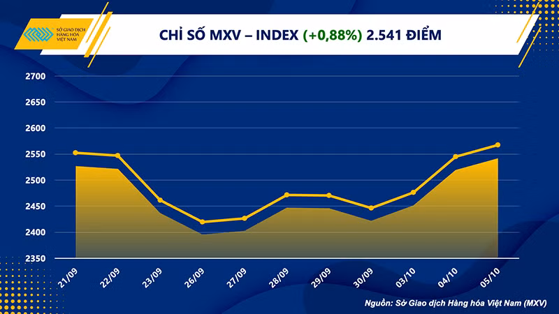 Dầu cọ thô có phiên tăng thứ 5 liên tiếp dù lực tăng trong phiên hôm qua khá nhẹ, chỉ 0,77%. Đầu phiên giao dịch giá bất ngờ bật tăng nhờ hỗ trợ từ giá dầu thô. Tuy nhiên, giá bắt đầu giảm dần từ phiên sáng 5/10 khi dự kiến số liệu về tồn kho dầu cọ vào cuối tháng 9 của Malaysia tăng 8% và chạm mức cao nhất trong gần 3 năm trở lại đây. Tuy vậy, đà tăng vẫn không hoàn toàn bị xóa tan mà vẫn giữ được mức khởi sắc 28 MYR/tấn cho đến khi kết thúc phiên.