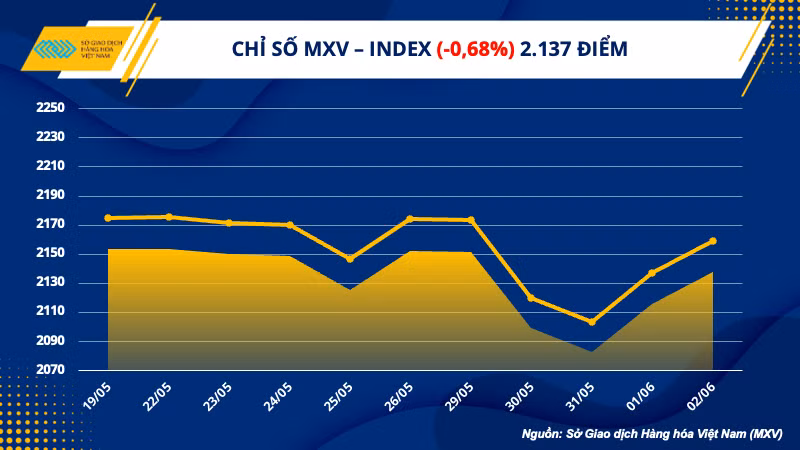 Tuy nhiên, lực bán rất mạnh trên nhóm năng lượng đã kéo chỉ số hàng hóa MXV-Index giảm 0,68% xuống 2.137 điểm, đánh dấu tuần giảm thứ 8 liên tiếp. Giá trị giao dịch toàn Sở duy trì ổn định ở mức trung bình hơn 4.300 tỷ đồng/phiên.