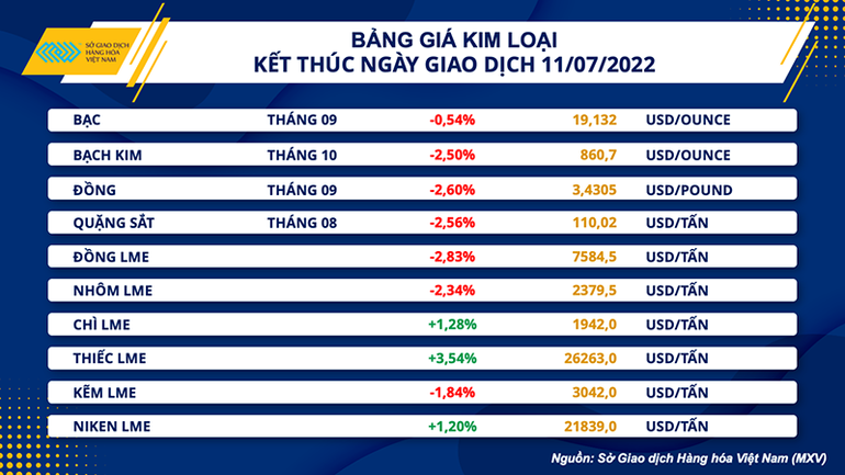 Đối với nhóm kim loại cơ bản, trước áp lực từ lo ngại suy thoái kinh tế và tình hình dịch bệnh, giá đồng COMEX và quặng sắt tiếp đà lao dốc quanh mức 2,6% xuống lần lượt các mức giá 3,43 USD/pound và 110,02 USD/tấn. Đồng peso của Chile, nhà sản xuất đồng lớn nhất thế giới đã giảm mạnh 15% so tháng trước khi lạm phát hằng năm đạt mức 12,5% vào tháng 6, mức cao nhất trong vòng 3 thập kỷ. Đồng tiền nội tệ suy yếu sẽ thúc đẩy dòng chảy xuất khẩu và điều này sẽ gây áp lực lên giá đồng, vốn đang đặt trong bối cảnh tiêu cực về nhu cầu tiêu thụ suy yếu.