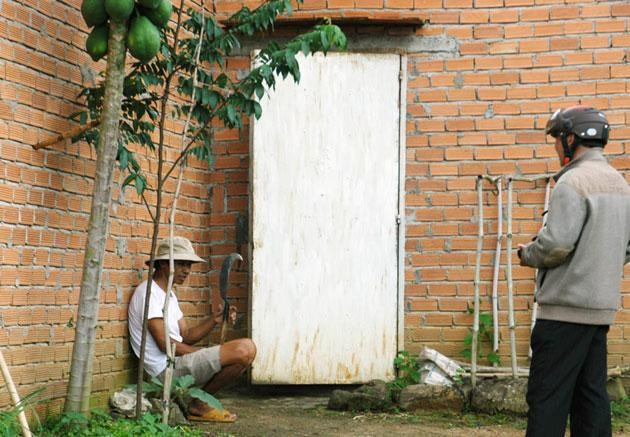 Đứng ngoài hàng rào thuyết phục từ sáng đến chiều, nhưng chúng tôi không thể vào được nhà ông Minh. Trên tay ông luôn lăm lăm cây rựa và luôn miệng chửi bới. Ông nói: Con tao bị tâm thần, bọn mày đừng chọc nó nữa!