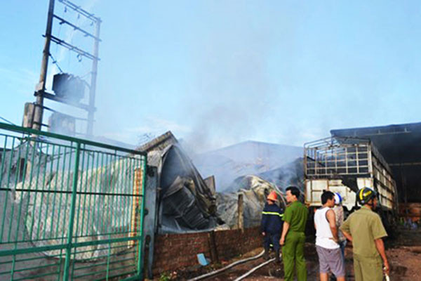 Giám đốc Công ty TNHH Minh Tiến buồn rầu nói: Khi công nhân công ty đang làm việc trong xưởng thì phát hiện nhà kho có cháy nhỏ nên đã hô hoán, dùng dụng cụ tại chỗ dập tắt lửa. Lúc này công nhân vào trong xưởng làm việc bình thường. Không ngờ, sau đó bên ngoài lửa đã nhen lại và bùng phát dữ dội lan rộng cả nhà kho nên không thể đối phó được nữa và chỉ chốc lát đã thiêu rụi toàn bộ kho tàng, nhà xưởng, ước tính thiệt hại ban đầu khoảng gần năm tỷ đồng…