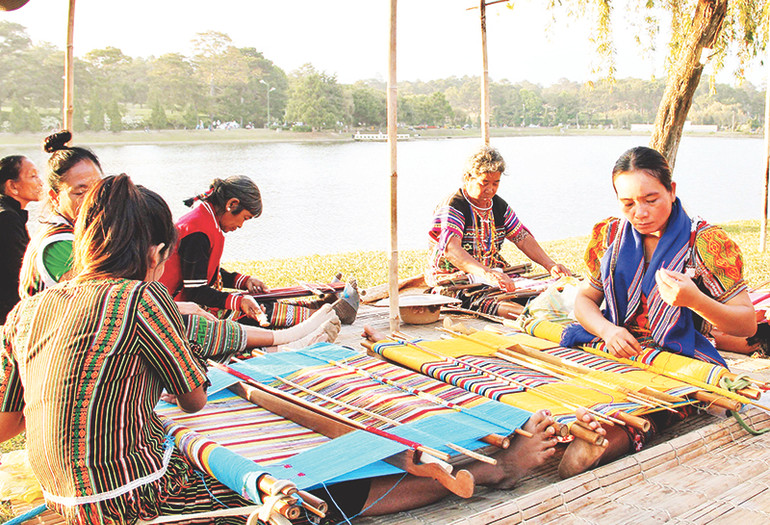 Hôm tôi đến buôn Đam Pao, huyện Lâm Hà, Lâm Đồng, bà Ka Niêr đã hơn 90 mùa rẫy, vừa dệt vừa khấp khởi nói: “Thổ cẩm của buôn làng mình đã đi xa rồi, vui lắm”. Gần cả đời người gắn với sợi chỉ dệt, đến giờ bà Ka Niêr mới nở nụ cười mãn nguyện, khi thổ cẩm của dân tộc mình theo những bộ sưu tập thời trang đến với bè bạn quốc tế. Thổ cẩm không thể thiếu trong đời sống các dân tộc thiểu số Tây Nguyên, gắn bó với họ suốt cả vòng đời. Trên sắc núi, màu rừng của tấm thổ cẩm đã thể hiện sự kết hợp hài hòa giữa tư tưởng, thẩm mỹ, tâm hồn của con người với thế giới tự nhiên.
