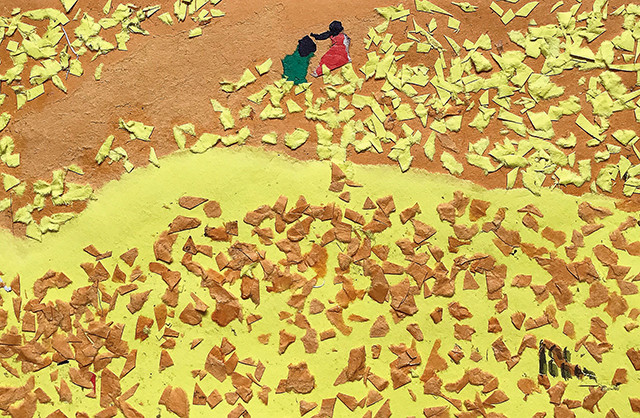 Vệt nắng vàng níu ríu chân em chạy nhảy khắp đồng làng