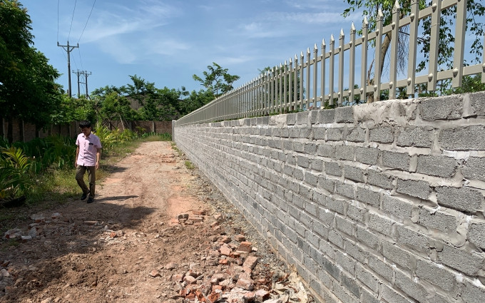 Được biết, sở hữu khu đất này là hộ gia đình ông Trần Thanh Sơn và bà Lưu Thị Dung, chủ một doanh nghiệp chế biến thực phẩm trên địa bàn xã. Khoảng 10 năm trước, ông Sơn và bà Dung mua đất trồng lúa của các hộ dân trên địa bàn, tích tụ thành diện tích trồng cây cảnh rộng lớn như hiện tại. Cuối năm 2019, nhà ông Sơn bắt đầu tiến hành đổ bê-tông cốt thép làm móng, rồi xây tường gạch, rào chắn cao khoảng 2m bao quanh toàn bộ khu đất.
