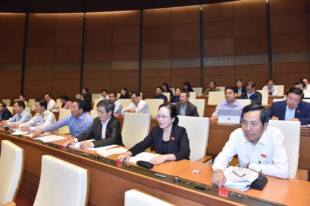 Các đại biểu Quốc hội đoàn Hải Phòng bấm nút biểu quyết.