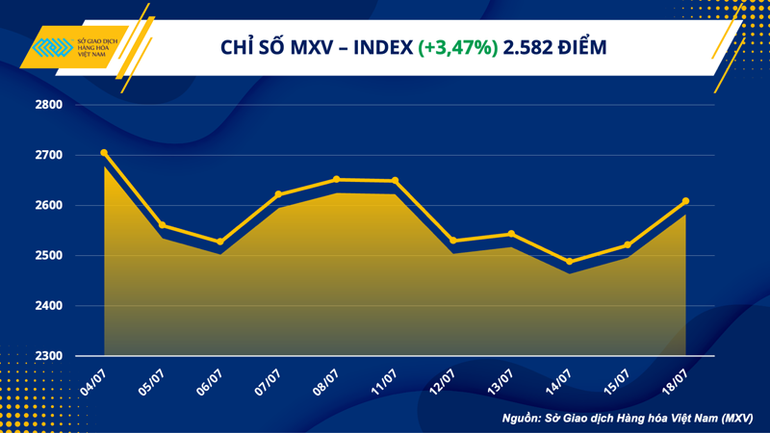 Sở Giao dịch hàng hóa Việt Nam (MXV) cho biết, động lực tăng giá cho toàn thị trường trong ngày hôm qua phải kể đến hỗ trợ của các thông tin vĩ mô đã thúc đẩy trực tiếp cho nhóm năng lượng và kim loại, từ đó tạo nên đà tăng cho toàn thị trường. Tuy nhiên, dòng tiền đầu tư tiếp tục cho thấy sự ổn định trước biến động, khi mà giá trị giao dịch toàn Sở duy trì ở mức trên 3.500 tỷ đồng.