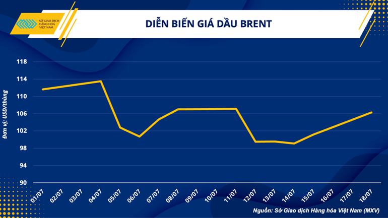 Giá dầu tăng rất mạnh trong phiên giao dịch ngày hôm qua nhờ Dollar Index giảm giá. Đối với dầu WTI, hợp đồng giao tháng 7 đã đến ngày giao dịch cuối cùng, và thị trường đã chuyển sang hợp đồng giao tháng 8. Kết thúc phiên giao dịch, giá WTI tăng 5,13% lên 99,42 USD/thùng trong khi giá dầu Brent tăng 5,05% lên 106,27 USD/thùng.