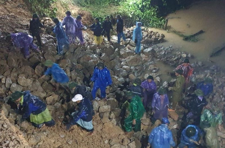 Giám đốc Công ty cổ phần Đường sắt Nghệ Tĩnh (đơn vị quản lý khai thác, bảo trì sửa chữa kết cấu hạ tầng đường sắt tại khu vực) Cao Tiến Hùng cho hay: "Đơn vị đã tập trung huy động tối đa lực lượng máy móc, nhân lực, vật lực, làm xuyên đêm để sớm khắc phục sạt lở, sụt trượt tại vị trí Km354+900 đến Km355+400 thuộc địa bàn thôn Liên Châu, xã Đức Liên, huyện Vũ Quang. Khó khăn nhất ở đây là các mỏ đá cách xa nơi thi công, phải di chuyển tới gần 200km, vận chuyển bằng ô-tô sau đó chuyển lên tàu di chuyển bằng đường độc đạo vào điểm bị sạt lở mất rất nhiều thời gian".