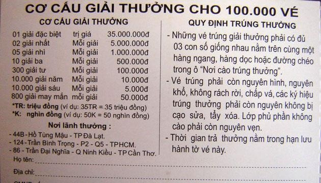 Mặt trước của tờ vé số.