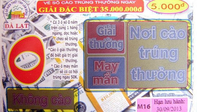 Loại hình vé số “xổ ngay” này khá hấp dẫn, người chơi cào nhẹ lớp phủ những con số bí mật, nếu trên cùng hàng ngang, hàng dọc hoặc hàng chéo có ba ô số 1 sẽ trúng thưởng; sau đó cào tiếp vào ô giải thưởng để biết trị giá trúng thưởng. Với mệnh giá vé 5.000 đồng, cơ cấu giải đặc biệt 35 triệu đồng, giải thấp nhất là 5.000 đồng; cơ cấu trả thưởng 55% trên tổng giá trị của một lô vé cùng ký hiệu (tức 55%/ giá trị của 100.000 vé).