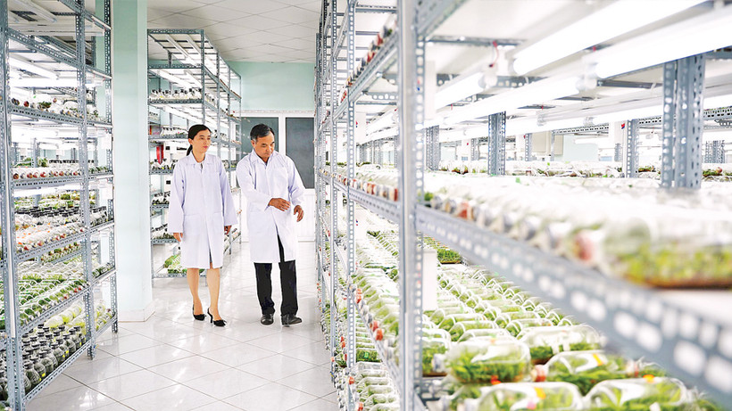 Với tốc độ đô thị hóa diễn ra mạnh mẽ, diện tích đất nông nghiệp ngày càng bị thu hẹp, xu hướng chuyển đổi từ trồng rau “trên đất” sang trồng rau “không dùng đất” là lựa chọn tối ưu. Trước bối cảnh này, Trung tâm Công nghệ sinh học Thành phố Hồ Chí Minh đang thử nghiệm trồng rau xà lách bằng Hệ thống Plant Factory (nhà máy thực vật), đây là hệ thống trồng rau thủy canh được thiết kế theo mô hình Nhật Bản, với tổng diện tích là 34,5m2. Trong đó, phòng trồng cây được thiết kế với 10 kệ, mỗi kệ có diện tích 0,84m2 gồm bốn tầng, tổng diện tích trồng cây cho mỗi kệ là 3,36m2. Với hệ thống này, Trung tâm Công nghệ sinh học Thành phố Hồ Chí Minh đã trồng thử nghiệm bảy giống xà lách có nguồn gốc Hà Lan, Nhật Bản, Việt Nam. Sau nhiều đợt trồng thử nghiệm cho thấy hầu hết các giống xà lách đều thích nghi tốt điều kiện trồng, mỗi năm trồng 15 đợt, với năng suất, chất lượng cao hơn so với cách trồng truyền thống. Từ kết quả này, Trung tâm Công nghệ sinh học Thành phố Hồ Chí Minh dự kiến mở rộng mô hình Plant Factory để sản xuất các loại rau, cây trồng khác có giá trị kinh tế và hướng đến chuyển giao cho nông dân, hợp tác xã, doanh nghiệp để nhân rộng.