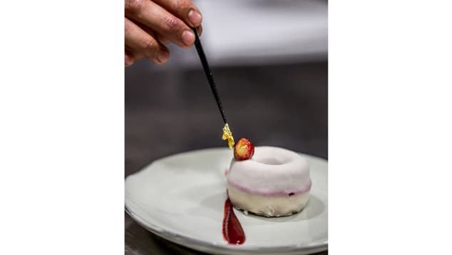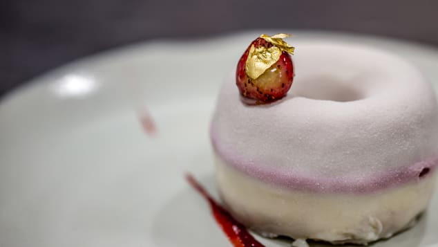 Bánh pho mát vòng vàng – một trong những thực phẩm có hay một menu 5 bữa có vàng làm nguyên liệu là những món ăn đặc biệt của khách sạn.