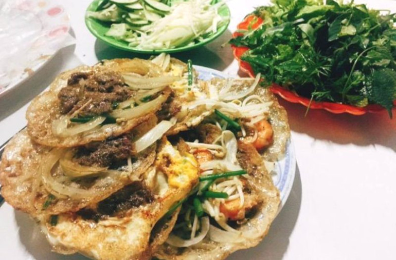 Bánh xèo tôm nhảy là món ăn đặc trưng ở rất nhiều nơi. Nhưng ở Quy Nhơn, bánh xèo có những nét riêng không thể lẫn được. Nhân được lựa chọn là những con tôm tươi, được bắt trong đầm từ đêm hôm trước, bột bánh nhào nặn bằng tay. Nước chấm là thứ không thể thiếu để tạo nên sự thơm ngon cho bánh.
