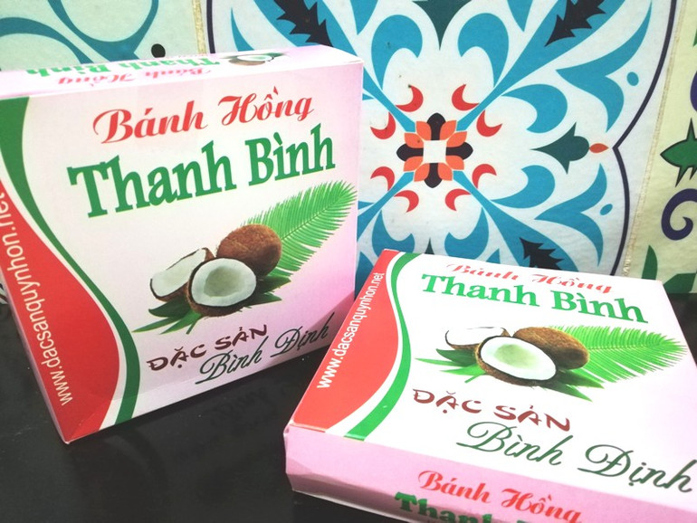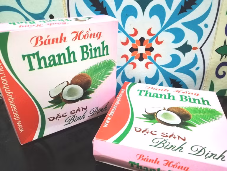 Bánh hồng, món đặc sản của vùng đất Bình Định, nhìn hao hao chè lam. Nguyên liệu làm ra bánh hồng đều rất dân dã gồm gạo nếp, đường kính và dừa. Bánh không quá ngọt, lại vừa dẻo vừa dai dai, sần sật của dừa cũng như dậy thơm mùi nếp. Tuy nhiên, khi để ngoài không khí lâu, bánh sẽ đanh lại, mất đi độ mềm.