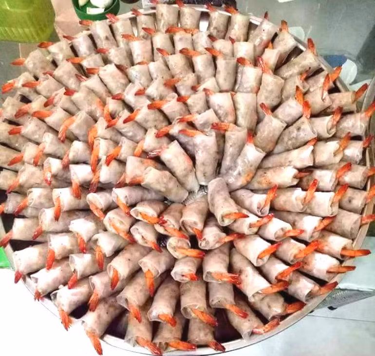 Chả ram tôm đất được nằm trong tốp món ngon Quy Nhơn, bởi không chỉ ngày thường mà vào dịp đặc biệt như lễ, Tết, món này không thể thiếu trong bữa cơm. Với nguyên liệu chính đơn giản, gồm: Tôm đất, thịt ba chỉ, bánh tráng… nhưng món chả ram sẽ khiến du khách ăn mãi không chán, bởi miếng chả được chiên giòn rụm, nóng hổi, có vị thơm đặc trưng, ăn kèm với rau sống và chấm nước mắm chua ngọt.