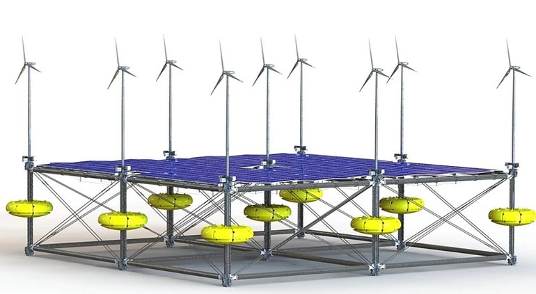 Mô hình trạm phát điện nổi tích hợp ba nguồn năng lượng tái tạo. Ảnh: Sinn Power.