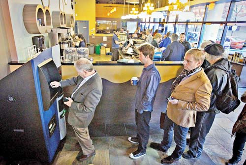 Người sử dụng xếp hàng tại cây ATM bitcoin ở Vancouver British Columbia cuối năm 2013, họ có thể rút tiền hoặc mua thêm bitcoin tại đây. Ảnh: Nguồn các báo nước ngoài.