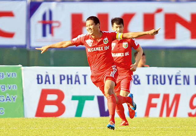 Ăn mừng bàn thắng trong mầu áo B. Bình Dương. Ảnh trong bài: Dũng Phương