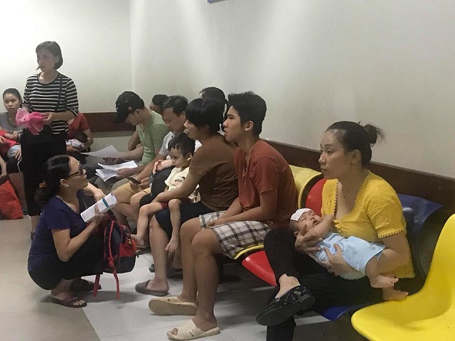 Mẹ của bé Trung Kiên (Vĩnh Phúc) cho biết, chị đã đưa con đi khám ở bệnh viện tỉnh nhưng không tìm ra nguyên nhân bệnh. “Cháu ho khò khè lâu rồi, cứ ho và dãi đỏ mà không tìm ra nguyên nhân. Nắng nóng bé càng khó chịu nên tôi cho con xuống Bệnh viện Nhi khám”, người mẹ này cho hay. Vừa tranh thủ cho con bú, mẹ bé Nhật Quang kể, bé bị tiêu chảy do virus gần một tháng qua và đã tạm khỏi. Tuy nhiên, mấy ngày nắng nóng gần đây, bé lại bị sốt, ho và sổ mũi. Gia đình lại sốt ruột khăn gói đưa nhau vào viện Nhi để khám bệnh cho cháu.
