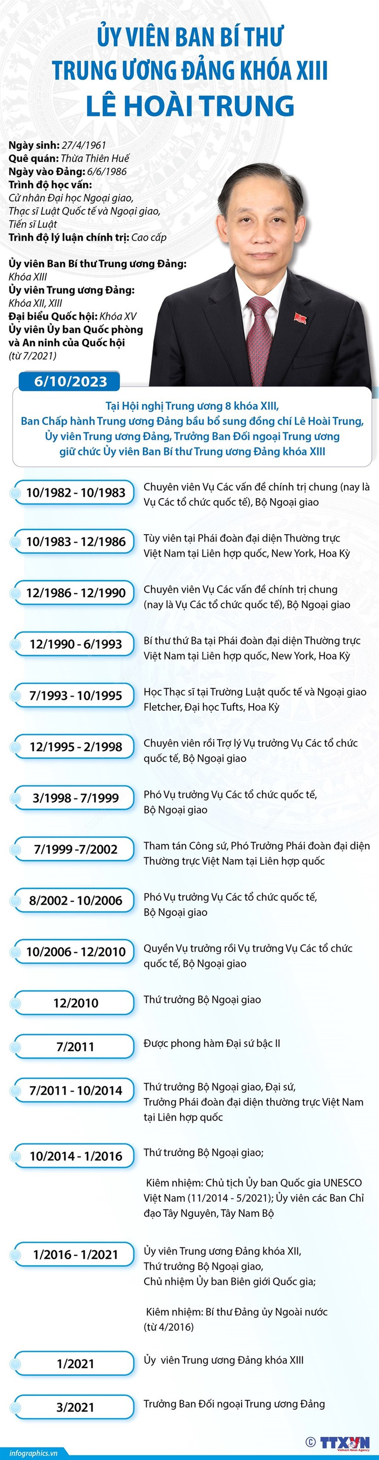 Ngày 6/10, tại ngày làm việc thứ 5 Hội nghị Trung ương 8 khóa XIII, Ban Chấp hành Trung ương Đảng bầu bổ sung đồng chí Lê Hoài Trung, Ủy viên Trung ương Đảng, Trưởng Ban Đối ngoại Trung ương giữ chức Ủy viên Ban Bí thư Trung ương Đảng khóa XIII.
