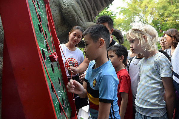 Các em nhỏ trải nghiệm trò chơi truyền thống của Việt Nam và Hàn Quốc.