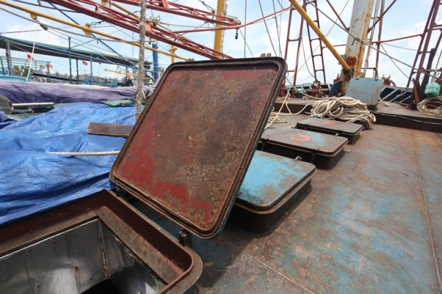 Boong tàu, hầm cá tàu Đại Nguyên Dương gỉ sét trông như con tàu già đã hoạt động vài năm trên biển.