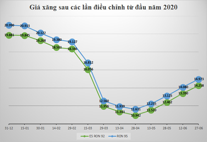 Thời gian thực hiện các mức giá trên áp dụng từ 15 giờ 00 ngày 27-6-2020.