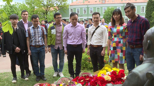 Lưu học sinh Việt Nam tại St. Petersburg đặt hoa tưởng niệm Bác Hồ.