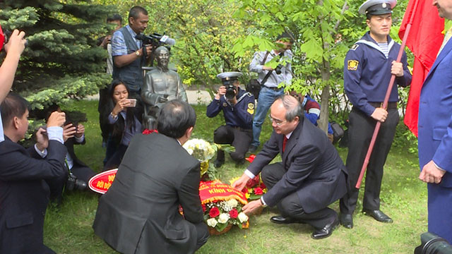 Trước tượng đài Bác, các đại biểu đã dành một phút mặc niệm, tưởng nhớ Bác Hồ, vị Lãnh tụ vĩ đại của dân tộc Việt Nam. Đồng chí Nguyễn Thiện Nhân và các đại biểu đã dâng lên Bác Hồ những bông hoa tươi thắm để bày tỏ lòng biết ơn những đóng góp to lớn của Người cho sự nghiệp cách mạng, công cuộc giải phóng dân tộc Việt Nam. Các đại biểu cũng đã kính cẩn thắp hương trước bàn thờ Chủ tịch Hồ Chí Minh tại trụ sở Đại sứ quán Việt Nam tại LB Nga.