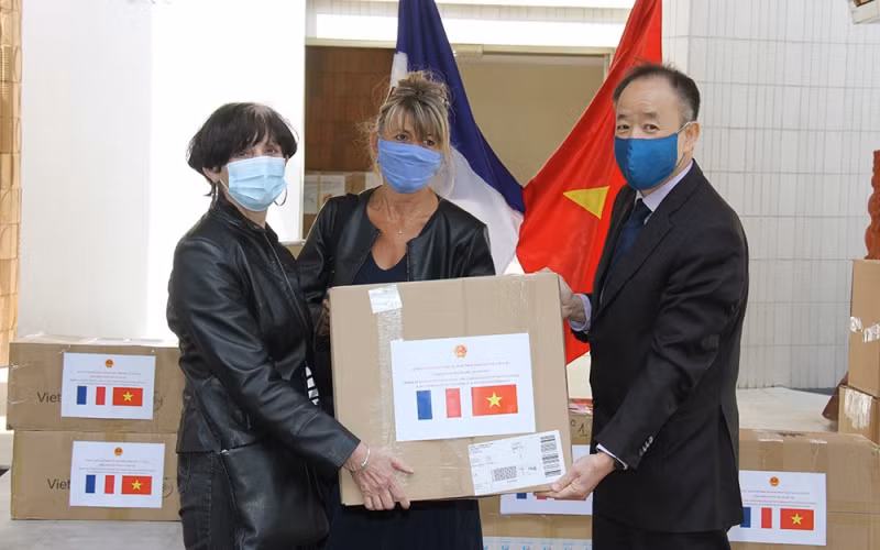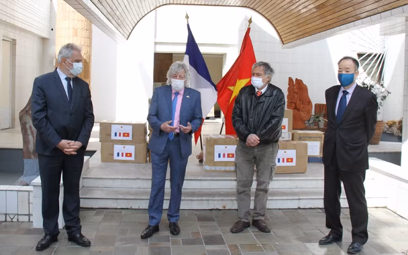 Ông cho biết, nhân dân Pháp rất vui mừng khi thấy Việt Nam sớm đạt kết quả trong việc khống chế dịch bệnh và cũng rất cảm động khi nhận được sự ủng hộ kịp thời từ các bạn Việt Nam. Món quà đầy ý nghĩa được trao tặng cho nhân dân Pháp trong dịp này là bằng chứng cụ thể về sự chia sẻ, khẳng định tình hữu nghị, đoàn kết quý báu giữa Nhà nước và nhân dân hai nước.